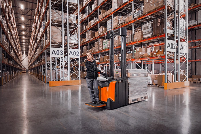 BT Staxio con pedana operatore per doppio stoccaggio 2.0t stretto