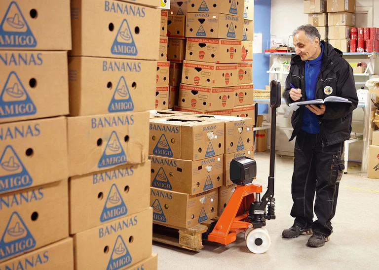 - Il modulo batteria sostituibile garantisce 35 ore di utilizzo e consente l’uso del transpallet manuale senza pesatura durante la ricarica della batteria.